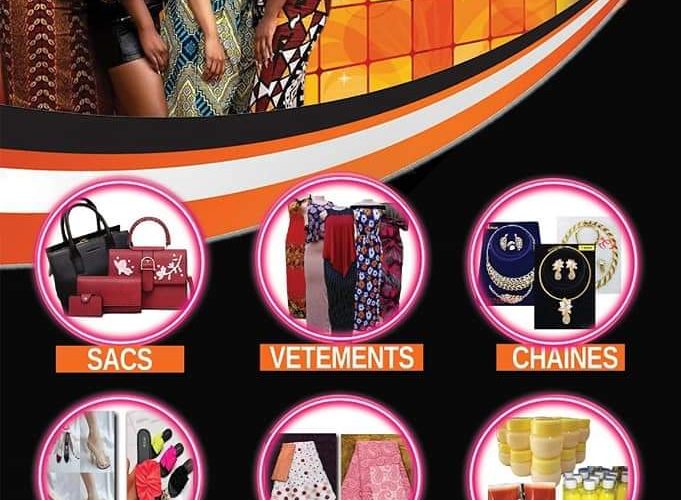Vente de vêtements chaîne sac chaussures pagne bijoux guipure soie lessi bazin laces